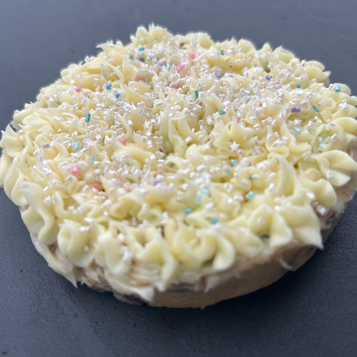 The perfect combination of a cookie and a cake, this mini Cookie Cake is always a hit! It’s soft, chewy, and full of gooey chocolate chips with your choice of frosting color? Want to add a custom message or special decorations? Just let us know—unique touches are available for a small additional fee.